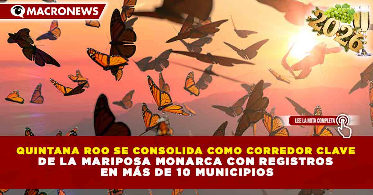 Redacción Macronews.- Quintana Roo se consolida como un corredor estratégico para la mariposa monarca, luego de que se confirmaran avistamientos y registros de esta especie en más de 10 municipios del estado, lo que refuerza la importancia ambiental de la región dentro de las rutas migratorias de esta emblemática mariposa.