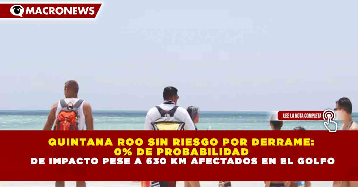 Redacción Macronews.- A pocos días del inicio de las vacaciones de Semana Santa, autoridades descartan afectaciones por el derrame de hidrocarburo en el Golfo de México en las costas de Quintana Roo, al asegurar que existe un 0% de probabilidad de impacto en el Caribe mexicano.