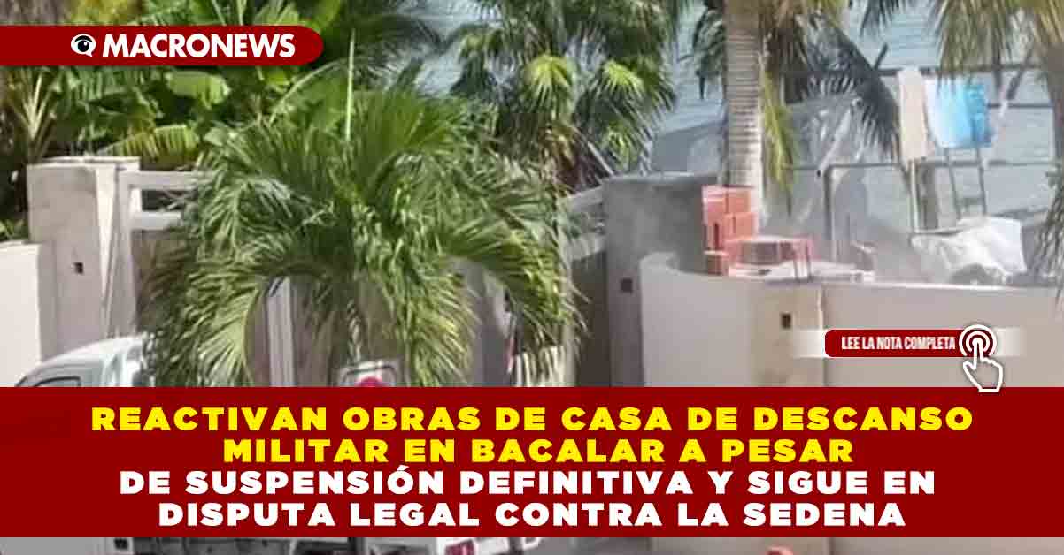 Las obras de la casa de descanso militar en Bacalar, promovida por la Secretaría de la Defensa Nacional, fueron reactivadas, pese a contar con una suspensión definitiva que los obligó a detener labores.