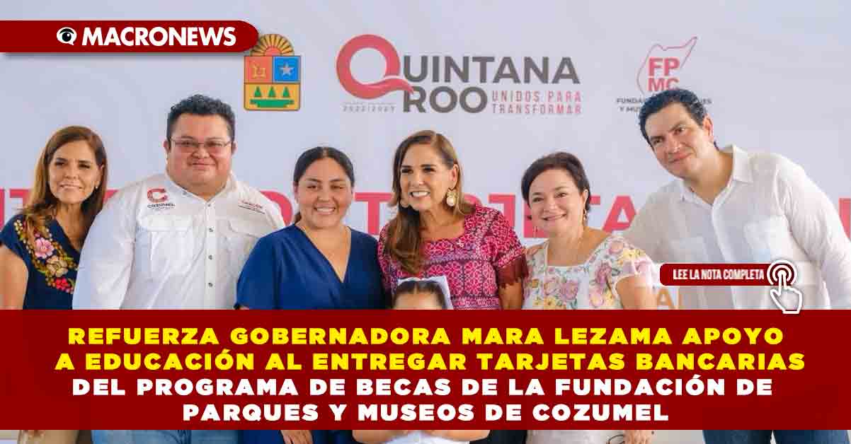 Cozumel.- En un esfuerzo conjunto por garantizar la permanencia escolar y fortalecer el desarrollo académico de la juventud cozumeleña, la gobernadora Mara Lezama, a través de la Fundación de Parques y Museos de Cozumel (FPMC), encabezó la entrega de tarjetas bancarias a las y los nuevos beneficiarios del Programa de Becas Escolares, mediante las cuales recibirán un apoyo económico mensual.