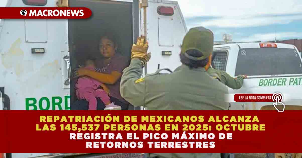 REPATRIACIÓN DE MEXICANOS ALCANZA LAS 145,537 PERSONAS EN 2025: OCTUBRE REGISTRA EL PICO MÁXIMO DE RETORNOS TERRESTRES
