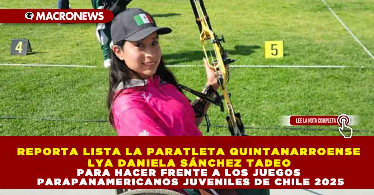 Chile.- Con la motivación de cosechar una medalla para México y para Quintana Roo, la paratleta Lya Daniela Sánchez Tadeo se reportó lista para iniciar su participación en la disciplina de Paratiro con Arco, esto dentro de los Juegos Parapanamericanos Juveniles de Chile 2025, a partir de este domingo 02 de noviembre.