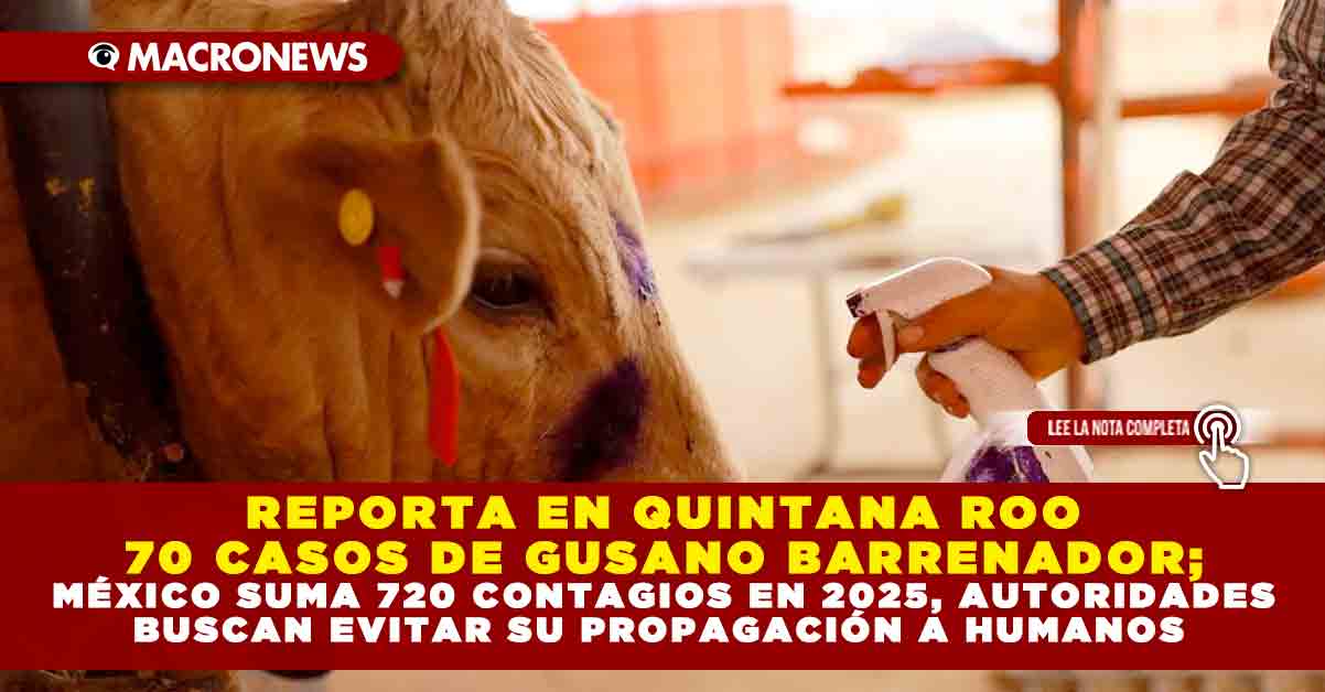 - Quintana Roo reporta 70 casos de gusano barrenador; en México suman 720 contagios en 2025