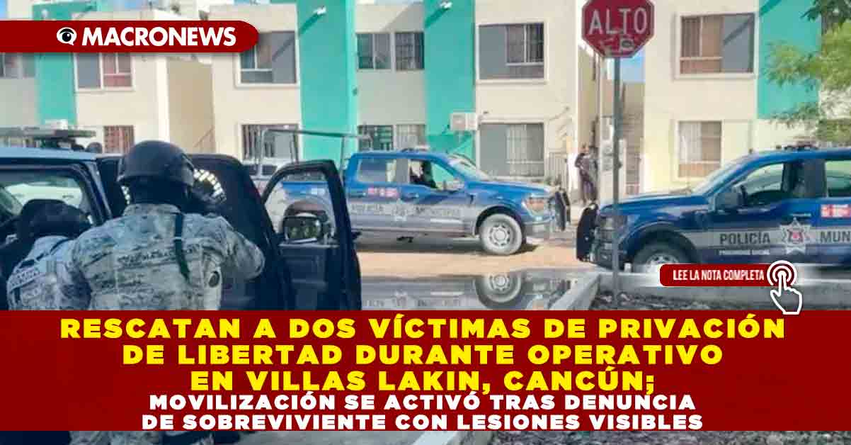 Redacción Macronews.- La mañana de este jueves 18 de septiembre se registró un operativo de seguridad en el fraccionamiento Villas Lakin, supermanzana 258 de Cancún, que culminó con el rescate de dos hombres que se encontraban privados de la libertad. El despliegue fue activado tras el reporte de un hombre que logró escapar de una presunta casa de seguridad, presentando visibles golpes y marcas en las manos. La víctima alertó a vecinos de la zona, quienes notificaron de inmediato al número de emergencias 911.