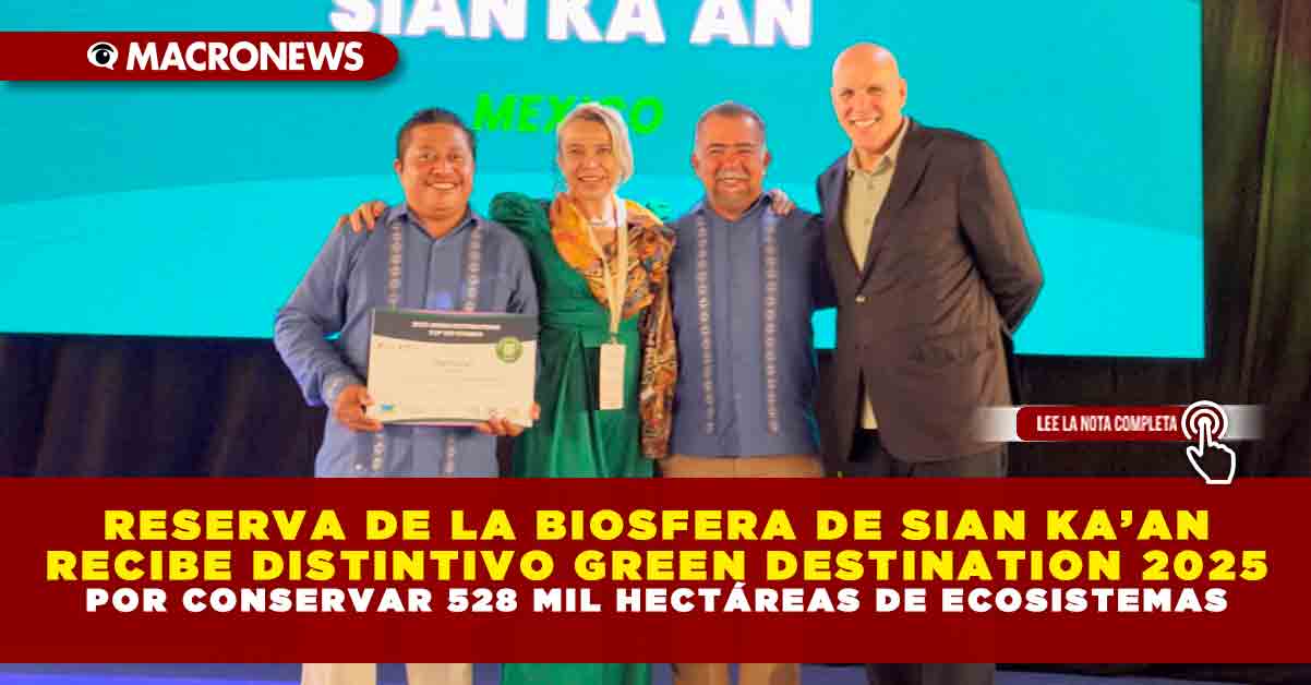 Redacción Macronews por Renán Moguel.- Ante más de 360 delegados internacionales de 40 países, la Reserva de la Biósfera de Sian Ka’an, en Quintana Roo, fue reconocida durante la Conferencia Internacional Green Destinations 2025, donde obtuvo el Distintivo en la categoría “Naturaleza y Paisaje”.