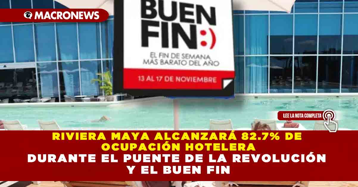 Las previsiones de la Secretaría de Turismo federal colocan a la Riviera Maya como el destino con el mayor repunte de ocupación hotelera entre el jueves 13 y el lunes 17 de noviembre, ya que se estima que alcanzará el 82.7 por ciento; Puerto Vallarta, 82.2 por ciento; Los Cabos, 79.1 por ciento; Cancún, 77.5 por ciento, y Mérida, 74.5 por ciento.