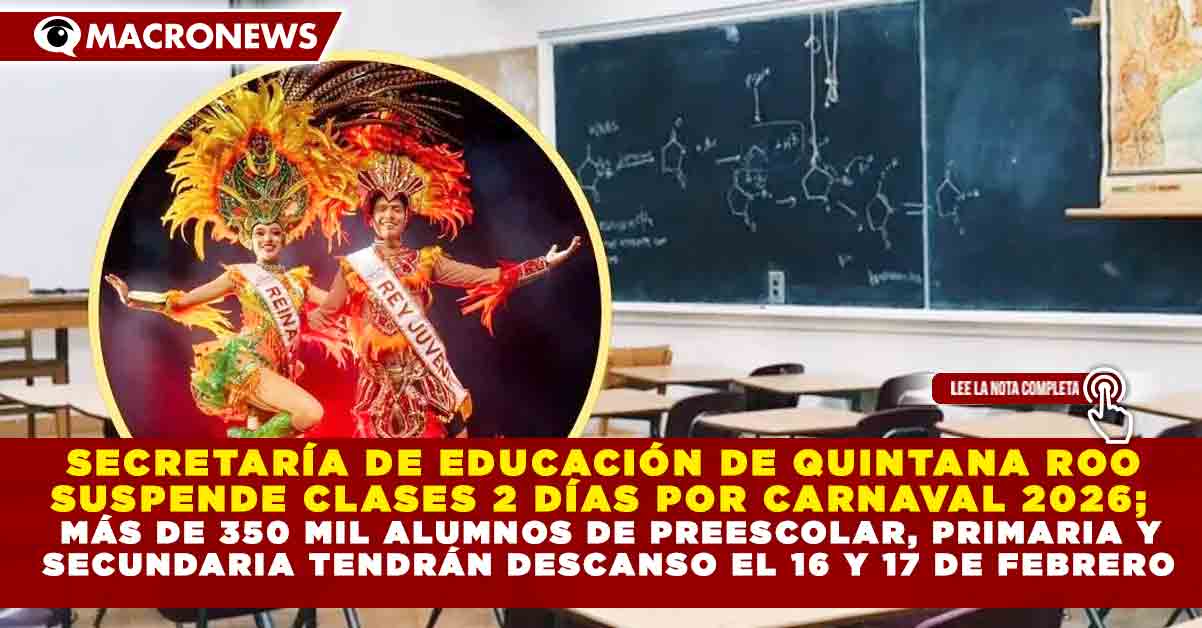 Redacción Macronews.- La Secretaría de Educación de Quintana Roo autorizó la suspensión de clases los días 16 y 17 de febrero de 2026, medida que beneficiará a más de 350 mil estudiantes de nivel básico en todo el estado, con motivo de las celebraciones del Carnaval.