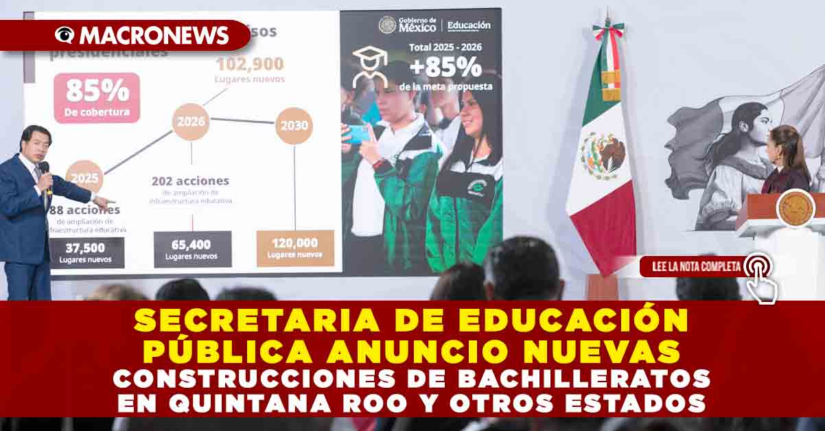 Redacción Macronews.- El titular de la Secretaría de Educación Pública (SEP), Mario Delgado Carrillo, informó esta mañana sobre la construcción de nuevos planteles de bachillerato y la ampliación de algunos ya existentes en Benito Juárez y Playa del Carmen, además de otras entidades del país. Durante su intervención en la “Mañanera del Pueblo”, el secretario subrayó que esta iniciativa federal busca garantizar que ningún joven se quede sin estudios a partir del próximo año.