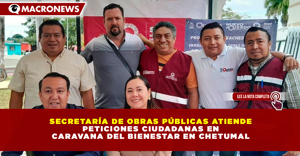 Redacción Macronews.- En cumplimiento con las directrices de un gobierno cercano y de territorio, la Secretaría de Obras Públicas (SEOP) participó activamente en la Caravana del Bienestar realizada en el parque Aarón Merino de la capital del estado. Esta jornada se alinea con el Nuevo Acuerdo por el Bienestar y Desarrollo de Quintana Roo, impulsado por la gobernadora Mara Lezama, con el objetivo de eliminar las barreras burocráticas y llevar los servicios estatales directamente a las familias chetumaleñas.
