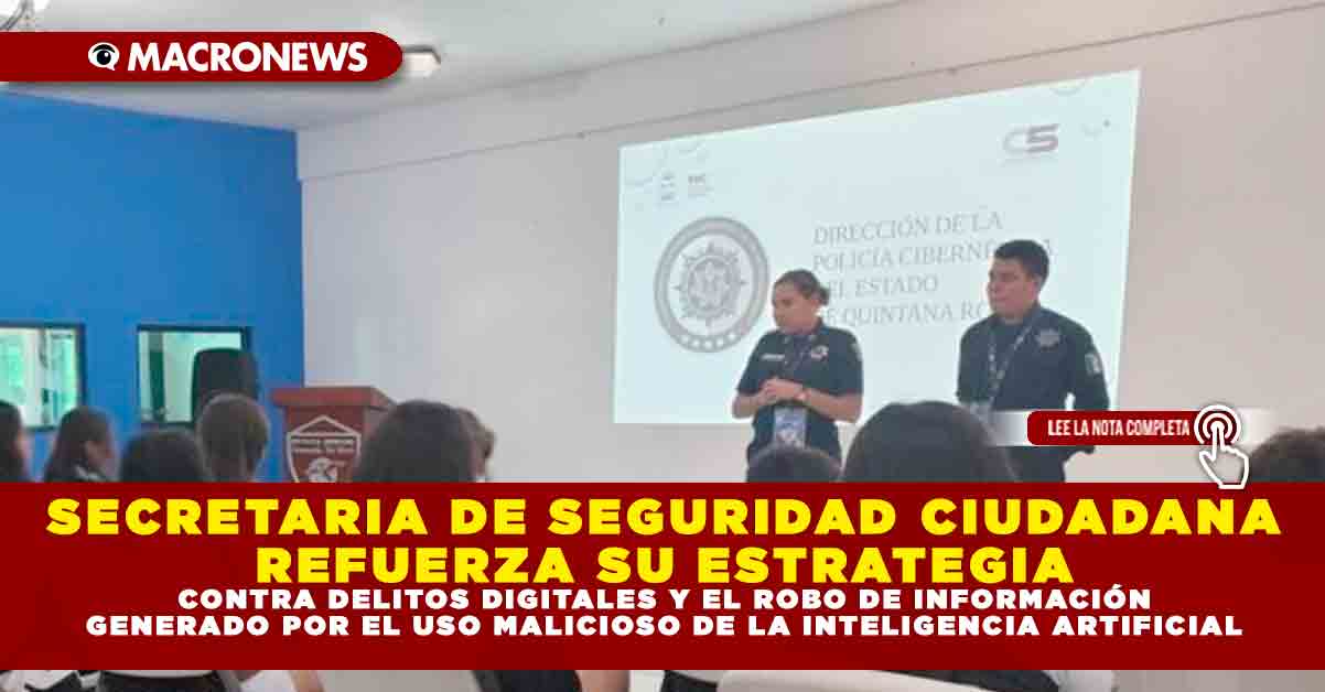 Redacción Macronews por Santiago Ramírez.- La Secretaría de Seguridad Ciudadana (SSC) de Quintana Roo, a través de la Dirección de Policía Cibernética, reforzó su estrategia de prevención ante delitos digitales, con especial énfasis en los riesgos derivados del uso de inteligencia artificial (IA) para el robo de información.