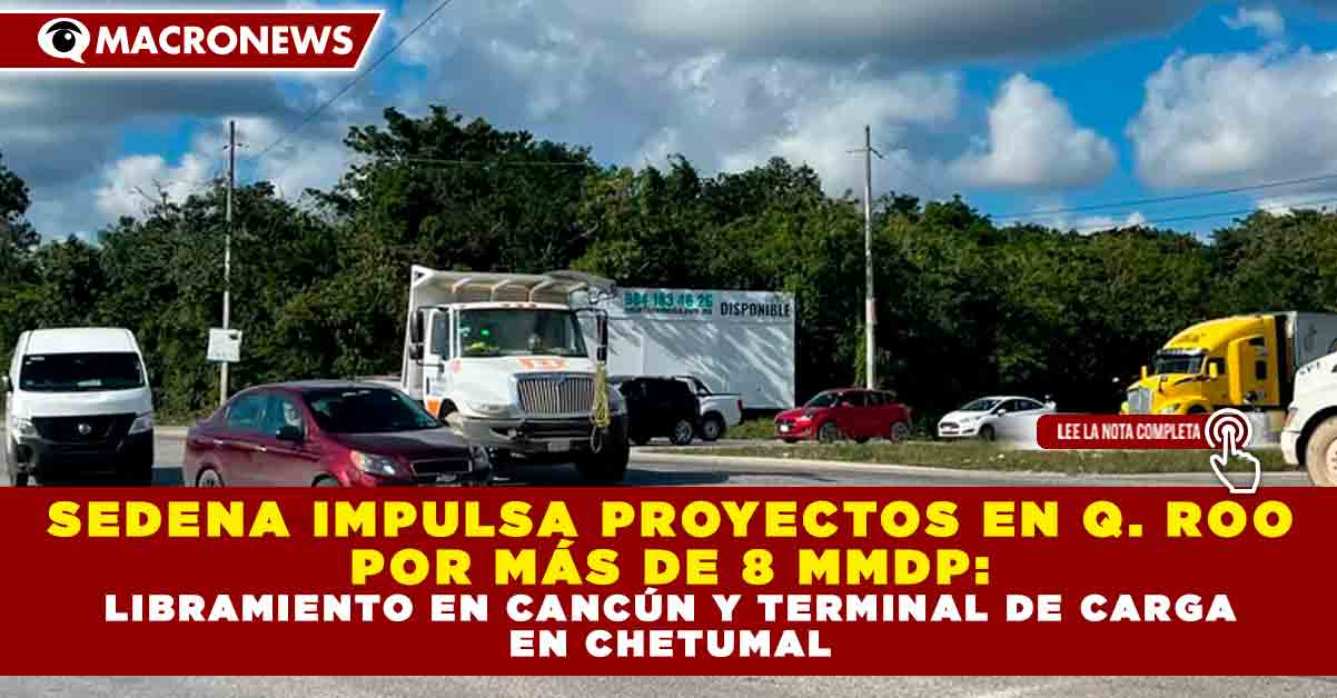 Redacción Macronews.- La Secretaría de la Defensa Nacional (Sedena) ingresó ante la Secretaría de Medio Ambiente y Recursos Naturales (Semarnat) dos proyectos de infraestructura en Quintana Roo con una inversión superior a 8 mil millones de pesos. Se trata del Libramiento Vial Cancún-Sur, que ampliará la avenida Huayacán hasta su entronque con la carretera 180, con un presupuesto de 3 mil 121 millones de pesos, y de la terminal de carga del Tren Maya en Chetumal, cuya inversión prevista asciende a 5 mil 47 millones de pesos.