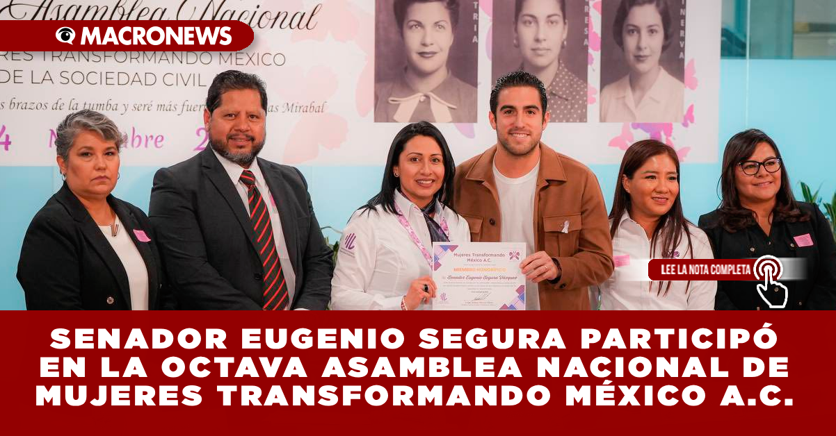 Ciudad de México, 24 de noviembre de 2025 – El senador Eugenio Segura participó hoy en la Octava Asamblea Nacional de Mujeres Transformando México A.C., un evento que reunió a activistas y lideresas enfocadas en impulsar la igualdad de género desde las comunidades.