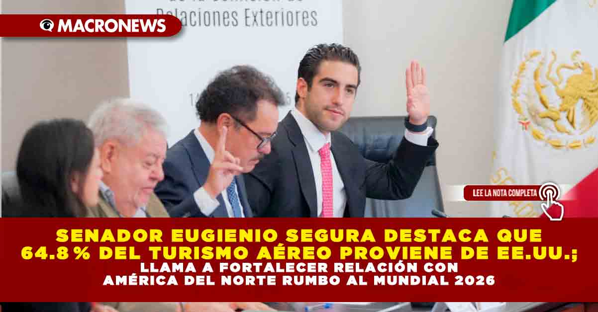 Redacción Macronews.- En el marco de la sesión de la Comisión de Relaciones Exteriores del Senado de la República, el senador por Morena, Eugenio “Gino” Segura, hizo un llamado a consolidar la relación con América del Norte como motor estratégico del turismo mexicano, especialmente ante la proximidad del Mundial de Fútbol 2026. Durante su intervención, respaldó la ratificación de Roberto Velasco Álvarez como subsecretario para América del Norte de la Secretaría de Relaciones Exteriores (SRE), y subrayó la necesidad de mantener una frontera moderna, segura y humana.