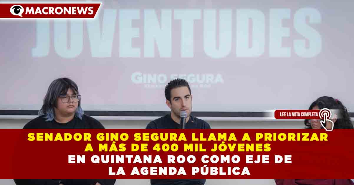 Redacción Macronews.- El senador Gino Segura reconoció la importancia de priorizar la agenda joven en Quintana Roo, al señalar que este sector representa más del 30% de la población estatal, por lo que consideró indispensable impulsar políticas públicas enfocadas en educación, empleo, salud mental y participación social.