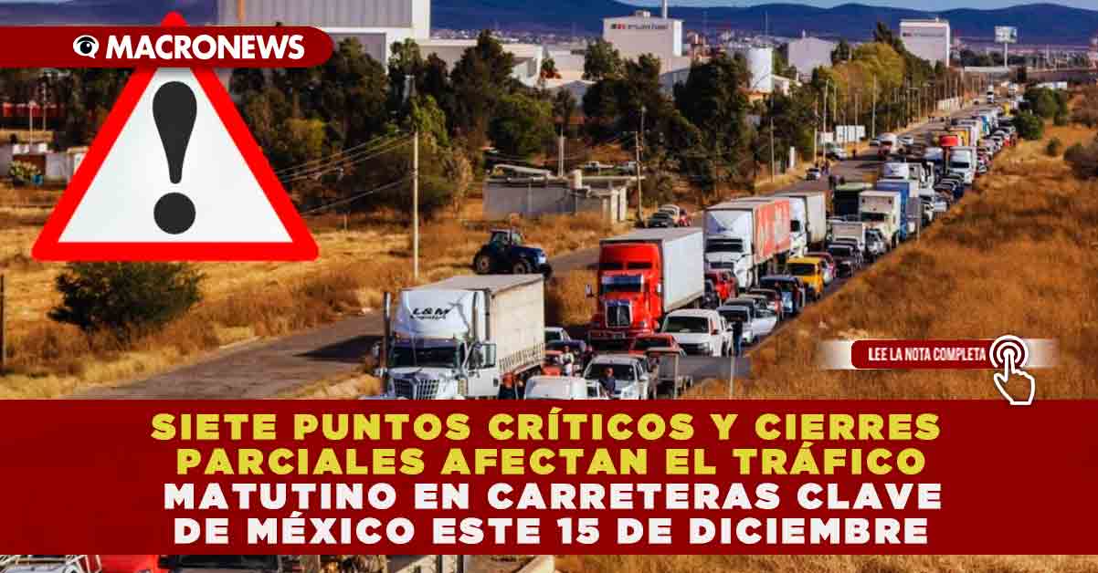 SIETE PUNTOS CRÍTICOS Y CIERRES PARCIALES AFECTAN EL TRÁFICO MATUTINO EN CARRETERAS CLAVE DE MÉXICO ESTE 15 DE DICIEMBRE 🛣️