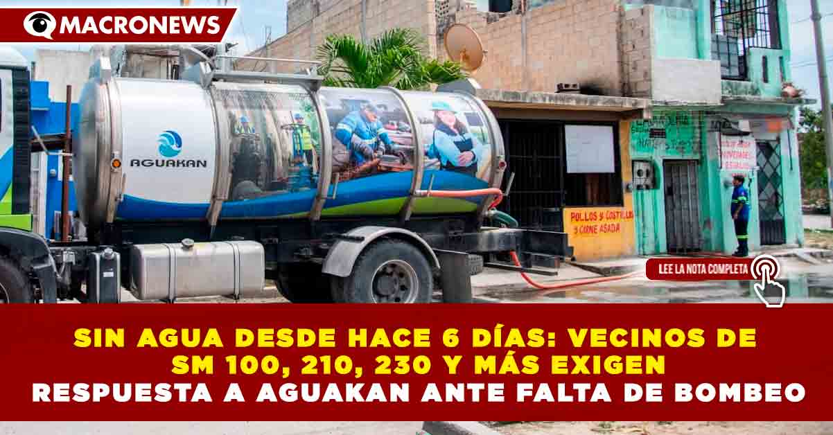 Redacción Macronews.- Habitantes de diversas supermanzanas de la ciudad denunciaron que desde hace seis días enfrentan problemas de falta de presión y bombeo de agua potable, situación que atribuyen a fallas en el servicio proporcionado por la empresa Aguakan.