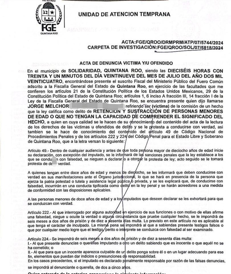 Playa del Carmen, 30 de octubre. – A un año de que se iniciara la carpeta de investigación 8176/2024, el denunciante de un complejo caso que involucró violencia, sustracción de menores e intento de homicidio en Playa del Carmen, afirma que su proceso judicial continúa paralizado debido a presunto tráfico de influencias y contubernio entre la Fiscalía General del Estado (FGE) y el abogado agresor, Kevin Ramón S. Q.