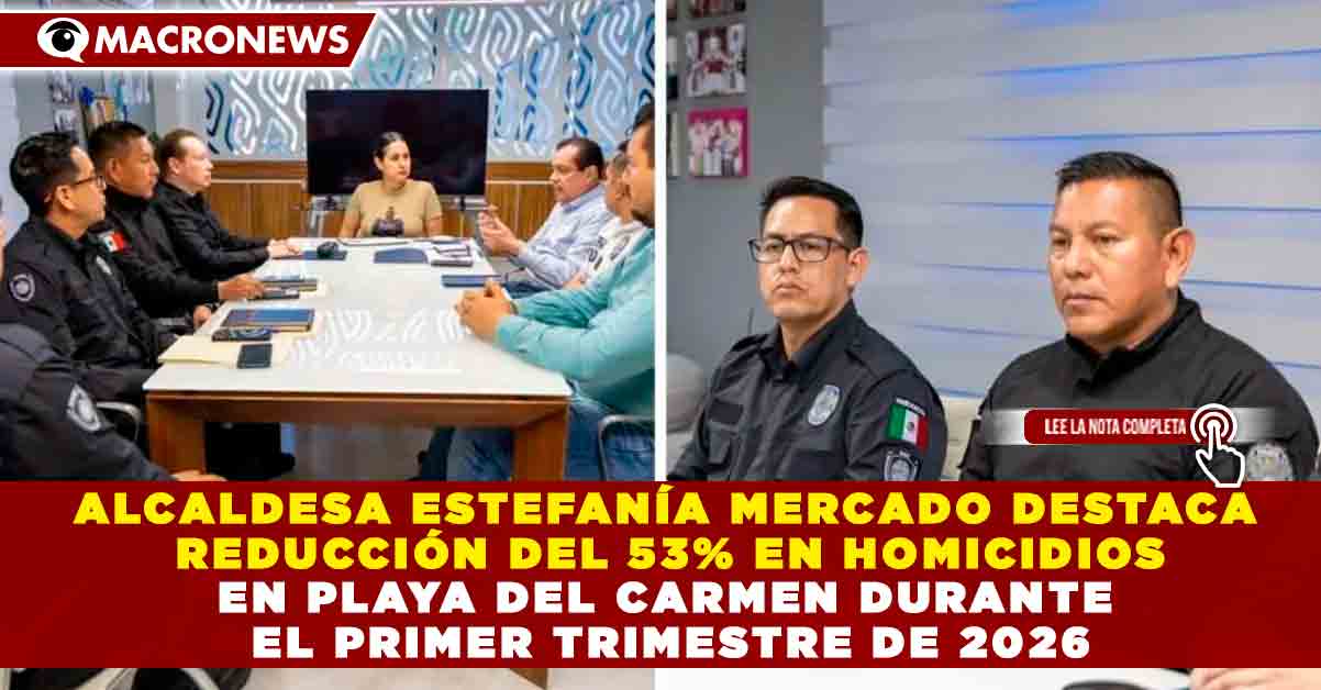 Redacción Macronews.- El municipio de Playa del Carmen registró una disminución del 53 por ciento en homicidios durante el primer trimestre de 2026, en comparación con el mismo periodo del año anterior, como resultado de una estrategia integral en materia de seguridad, informó la alcaldesa Estefanía Mercado.
