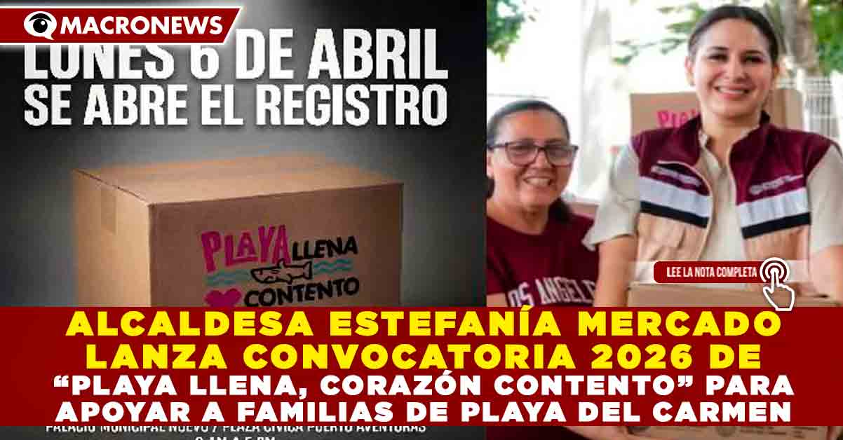 Redacción Macronews.- Con el firme compromiso de consolidar la justicia social y reducir las brechas de desigualdad en el municipio, la presidenta municipal Estefanía Mercado anunció el lanzamiento oficial de la convocatoria 2026 del programa “Playa Llena, Corazón Contento”. Esta iniciativa, considerada una de las políticas públicas con mayor sentido humano de su administración, busca garantizar que los apoyos sociales lleguen de manera directa y sin intermediarios a las familias que enfrentan condiciones de vulnerabilidad en Playa del Carmen y Puerto Aventuras.