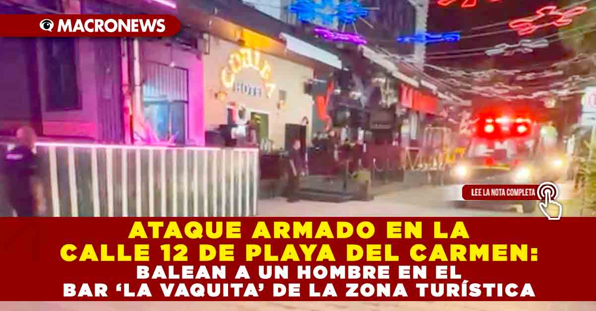 Redacción Macronews.- Un ataque armado se registró la noche de este domingo en el bar “La Vaquita”, ubicado en la concurrida avenida 12, en el corazón de la zona turística de Playa del Carmen. Los hechos ocurrieron alrededor de las 21:00 horas, cuando sujetos desconocidos irrumpieron en el establecimiento y accionaron sus armas de fuego contra un hombre, presuntamente un cliente, que se encontraba dentro del lugar.