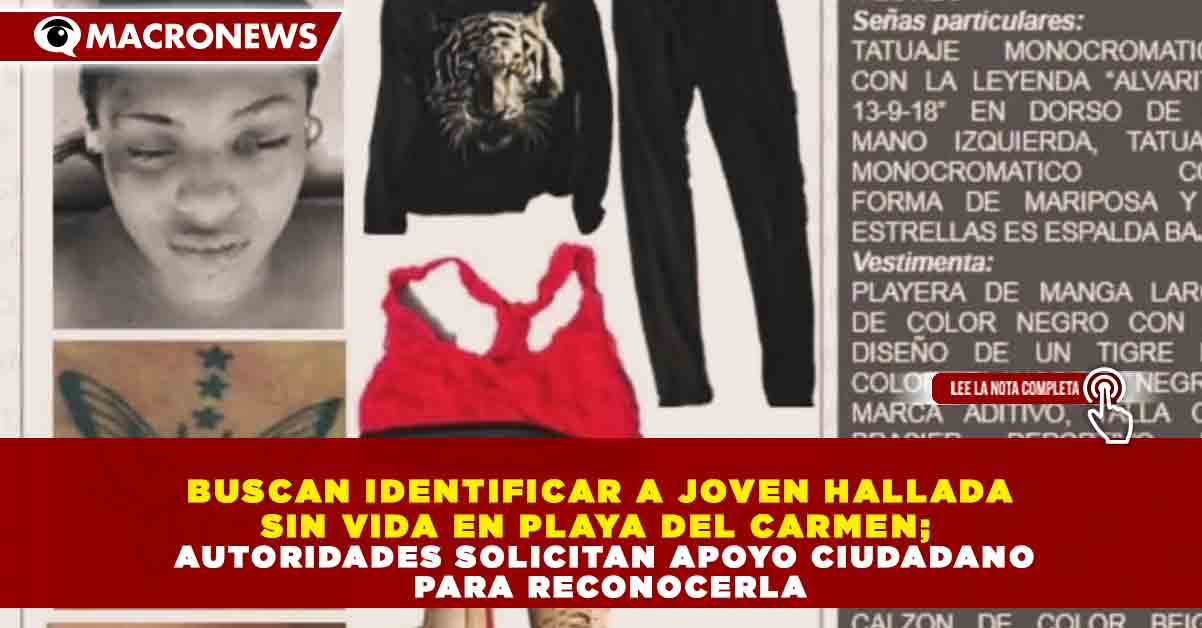 Redacción Macronews.- Autoridades en Playa del Carmen iniciaron un operativo para identificar a una joven que fue hallada sin vida, en un hecho que ha generado movilización de corporaciones de seguridad y servicios periciales en la zona.