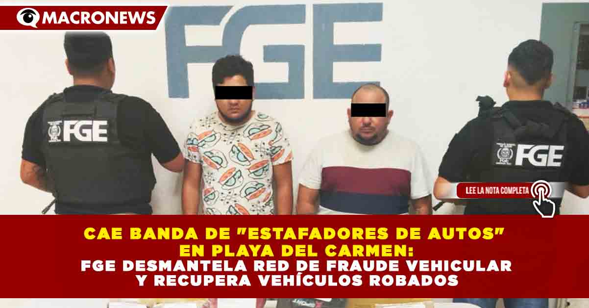 Redacción Macronews.- En un golpe certero contra el patrimonio de las y los quintanarroenses, la Fiscalía General del Estado (FGE) logró el desmantelamiento de una banda delictiva dedicada al fraude en la compra-venta de vehículos. El Fiscal General, Raciel López Salazar, informó que, gracias a un operativo coordinado con la Policía Municipal de Solidaridad, se concretó la captura de Manuel Jesús “N” y Mario Arturo “N”, presuntos responsables de una red que operaba mediante la simulación de robos y el uso de documentación apócrifa.