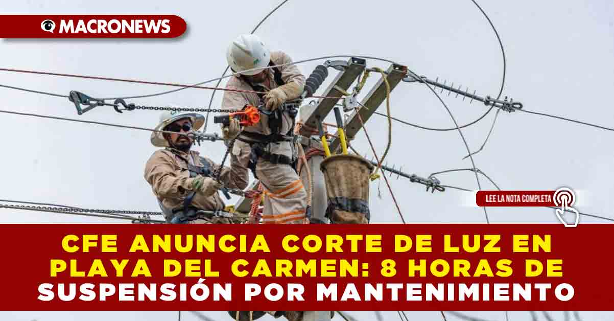 Redacción Macronews.- La Comisión Federal de Electricidad (CFE) ha informado que este viernes 24 de octubre se llevará a cabo un corte programado de energía eléctrica en diversas zonas de la Riviera Maya y Yucatán, como parte de los trabajos de mantenimiento en la red de distribución.