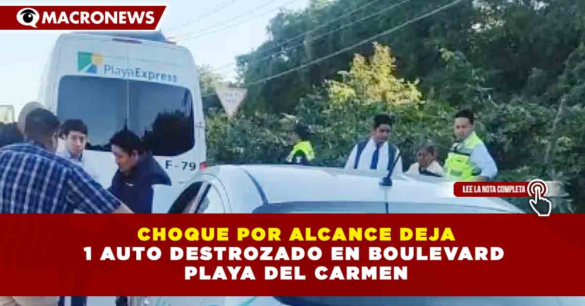Redacción Macronews.- Un choque por alcance registrado este martes sobre el boulevard Playa del Carmen dejó como saldo un vehículo con daños materiales de consideración, luego de que fuera impactado por otra unidad mientras circulaba en uno de los tramos con mayor flujo vehicular de la ciudad.