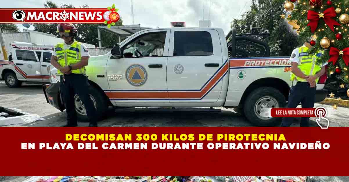 Redacción Macronews.- Autoridades de los tres niveles de gobierno decomisaron aproximadamente 300 kilos de pirotecnia en distintos puntos de Playa del Carmen, como parte de los operativos especiales implementados durante la temporada decembrina para prevenir accidentes y proteger la seguridad de la población.
