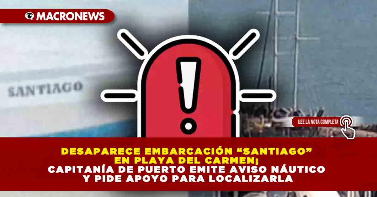Durante la tarde de este martes 14 de octubre de 2025, la Capitanía de Puerto de Playa del Carmen informó que emitió un aviso náutico tras la desaparición de una embarcación llamada “Santiago”. Te compartimos todos los detalles al respecto