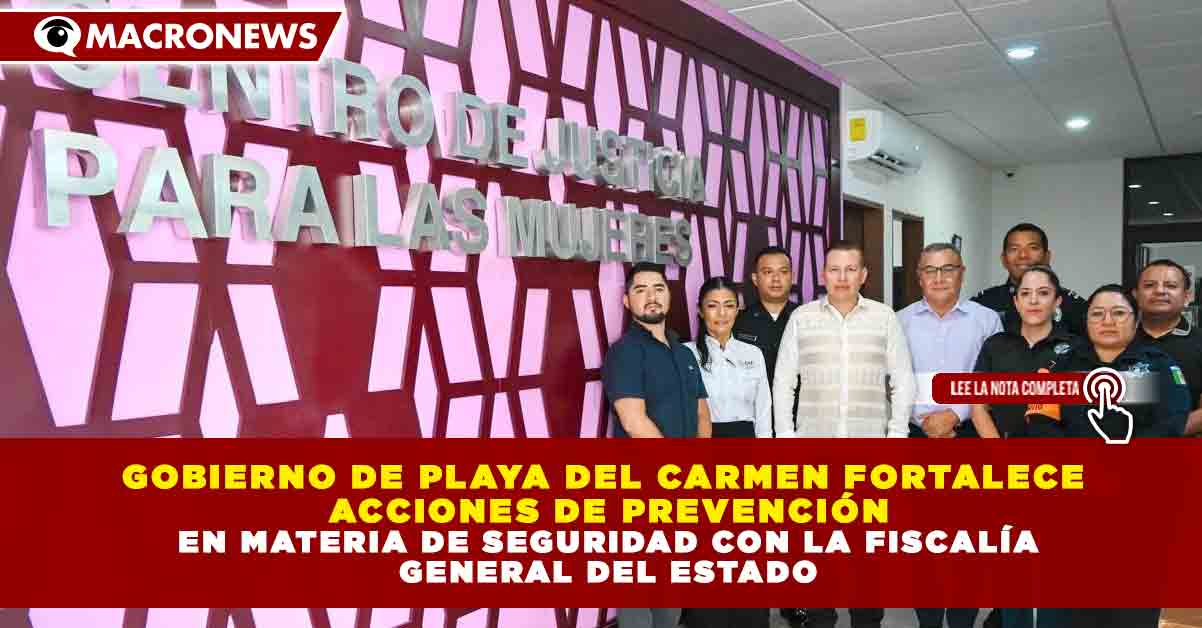 Playa del Carmen, Quintana Roo, 28 de abril de 2026.— En seguimiento a la estrategia de prevención en materia de seguridad, dirigida a niñas, niños, adolescentes y jóvenes, así como al fortalecimiento de entornos seguros para las mujeres, el Gobierno de Playa del Carmen, que encabeza la presidenta municipal Estefanía Mercado, dio continuidad a las mesas de trabajo con la Fiscalía General del Estado de Quintana Roo.