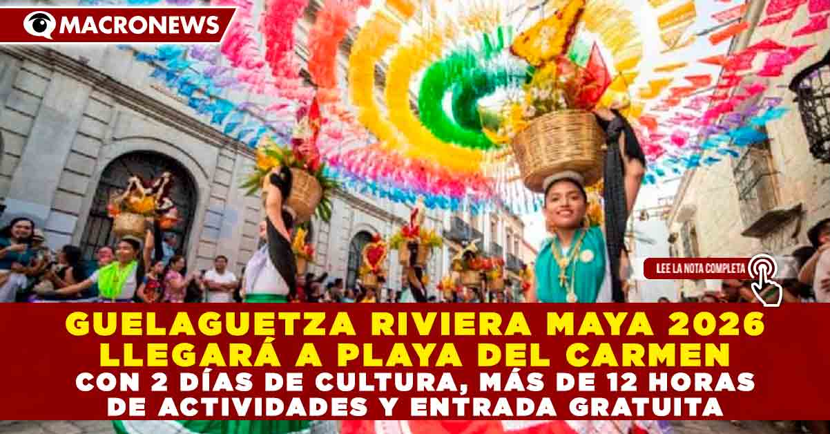 Redacción Macronews.- La riqueza cultural de Oaxaca llegará al Caribe mexicano con la Guelaguetza Riviera Maya 2026, un festival que se realizará los días 7 y 8 de marzo en Playa del Carmen, con más de 12 horas continuas de actividades culturales, música, danzas tradicionales, gastronomía y artesanías, todo con entrada completamente gratuita para residentes y turistas.
