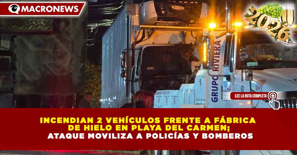 Redacción Macronews.- Dos vehículos —un camión y una camioneta— fueron incendiados de manera intencional por sujetos desconocidos frente a una fábrica de hielo en Playa del Carmen, lo que provocó una rápida movilización de cuerpos de emergencia y corporaciones de seguridad, sin que se reportaran personas lesionadas.