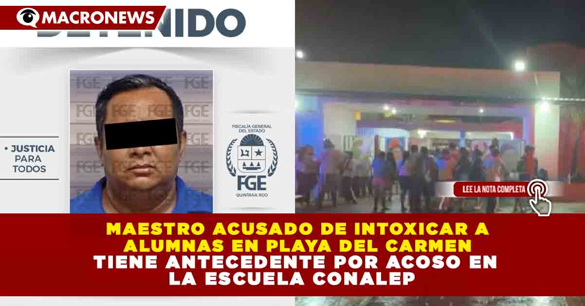 Redacción Macronews.- Un docente señalado por presuntamente intoxicar a alumnas en Playa del Carmen contaba previamente con al menos un antecedente por acoso mientras laboraba en un plantel del Colegio Nacional de Educación Profesional Técnica, lo que ha generado preocupación entre padres de familia y autoridades educativas.