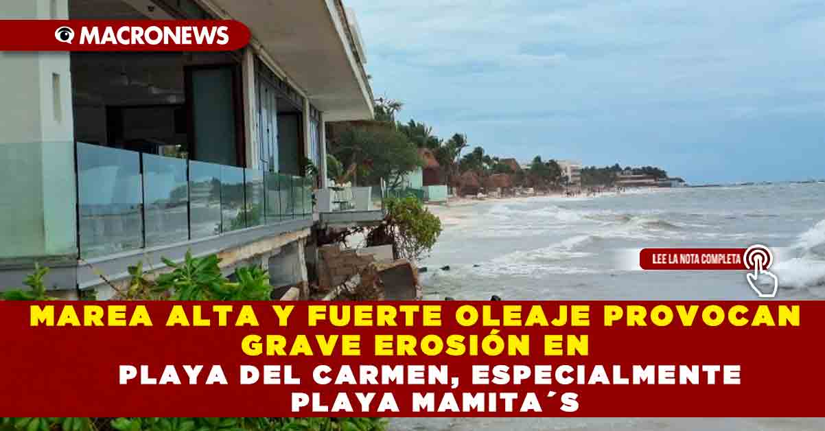 La erosión continúa presentándose en las costas de Playa del Carmen debido al mal tiempo, las mareas altas y el fuerte oleaje. Uno de los arenales que más han sufrido por estas condiciones es Mamita’s.