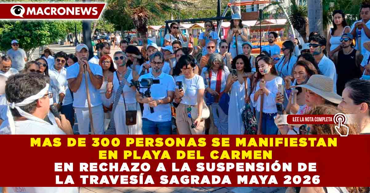 Redacción Macronews.- Más de 300 personas, entre canoeros y representantes de comunidades mayas, se manifestaron este sábado en la explanada del Palacio Municipal de Playa del Carmen para rechazar la suspensión de la Travesía Sagrada Maya 2026. Este evento, que constituye una de las expresiones culturales más representativas de la región, fue suspendido debido a un proceso legal relacionado con la representación de las comunidades indígenas, lo que ha generado incertidumbre y división.