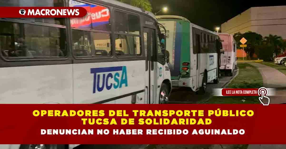 Operadores de la empresa Transportes Unidos del Carmen (Tucsa), encargada de brindar el servicio de transporte público urbano en Solidaridad, denunciaron que no recibieron aguinaldo, además de que les incrementaron las cuotas de cuenta que deben entregar a sus patrones.