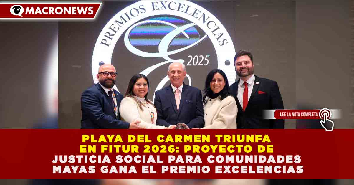 Redacción Macronews.- En una jornada histórica para el Caribe Mexicano, Playa del Carmen se alzó este miércoles 21 de enero con el prestigioso galardón Excelencias Turísticas 2025, entregado en el marco de la vigésimo primera edición de los Premios Excelencias durante la FITUR 2026 en Madrid, España. El proyecto galardonado, la “Ruta de la Miel y la Selva”, impulsado por la administración de la presidenta municipal Estefanía Mercado, se impuso ante candidaturas de 30 países, consolidando a este destino como un referente mundial de turismo comunitario, sustentabilidad y justicia social.