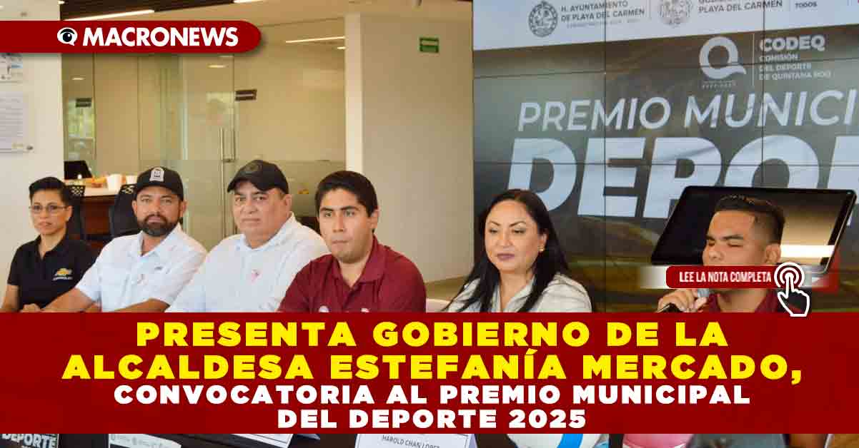 Playa del Carmen, Quintana Roo, 1 de octubre de 2025.– Como parte de la estrategia integral para fortalecer el deporte y reconocer a quienes destacan en esta materia, el gobierno municipal, que encabeza la presidenta Estefanía Mercado, lanzó la convocatoria al Premio Municipal del Deporte 2025, en un acto encabezado por el regidor presidente de la Comisión de Salud, Educación y Deporte, Saúl Barbosa, y el director del Instituto Municipal del Deporte, Alberto López.