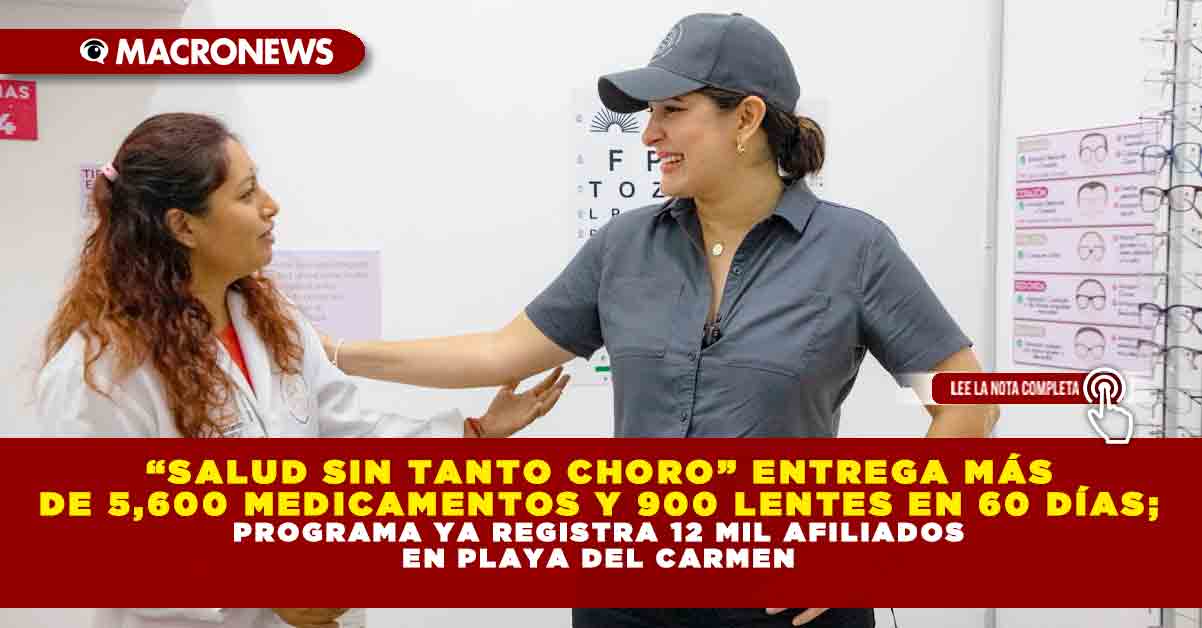 Redacción Macronews.- En apenas dos meses de operación, el programa municipal “Salud sin Tanto Choro” ha entregado más de 5,600 medicamentos y 900 lentes gratuitos a habitantes de Playa del Carmen, consolidándose como una de las iniciativas de salud pública más efectivas en el municipio. La presidenta municipal, Estefanía Mercado, informó que el programa tiene como meta afiliar a más de 20 mil personas en sus dos unidades médicas ubicadas en Villas del Sol y Zazil-Ha, y hasta el momento ya se han registrado 12 mil beneficiarios.