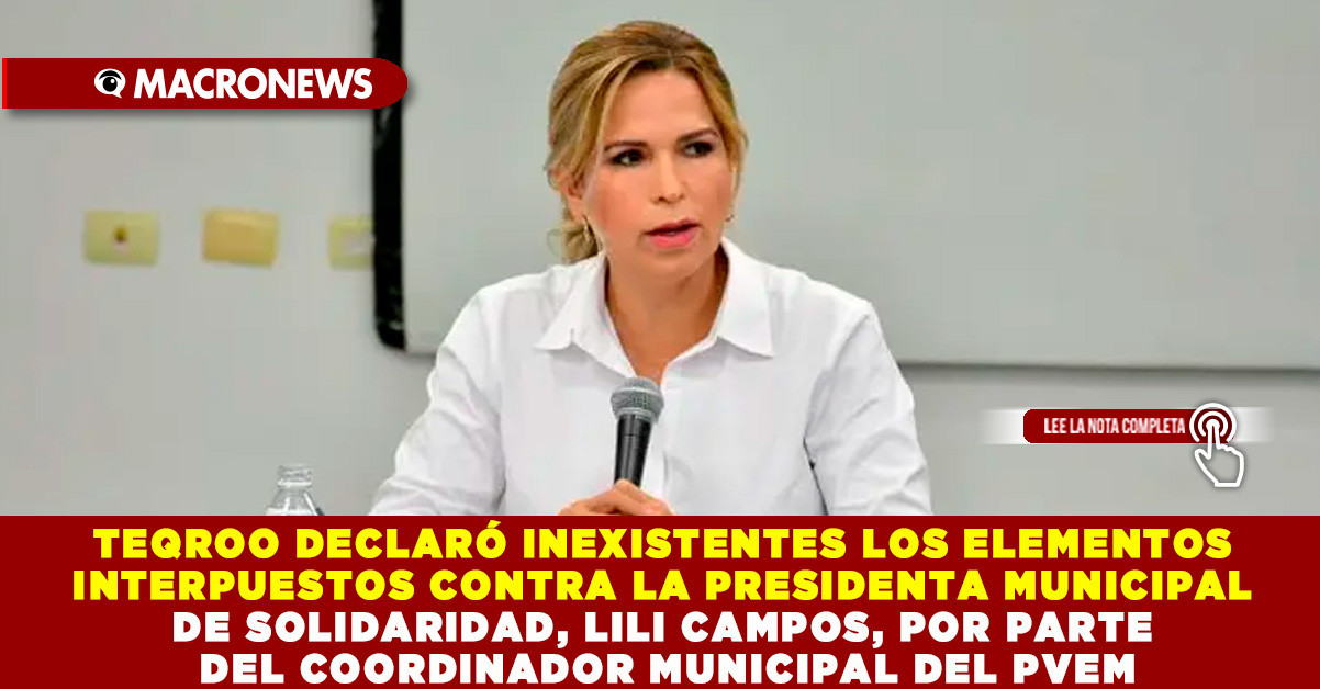 CHETUMAL, MX. – Debido a que no se logró acreditar la promoción personalizada de imagen con recursos públicos, el Pleno del Teqroo declaró inexistentes los elementos de queja interpuestos contra la presidenta municipal de Solidaridad, Lili Campos Miranda y su ex jefe de comunicación social, Arnulfo Ascencio González por parte del coordinador municipal del PVEM, Fernando Muñoz Calero.