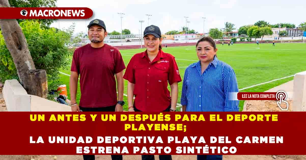 Playa del Carmen, Quintana Roo, 12 de agosto de 2025.— Donde antes había abandono, hoy hay esperanza. Gracias a una inversión histórica del Gobierno Municipal que encabeza Estefanía Mercado, la cancha de futbol soccer de la Unidad Deportiva Playa del Carmen, en donde se ubica en el emblemático Poliforum, cuenta, por primera vez en su historia, con pasto sintético, marcando un antes y un después para el deporte en la ciudad.