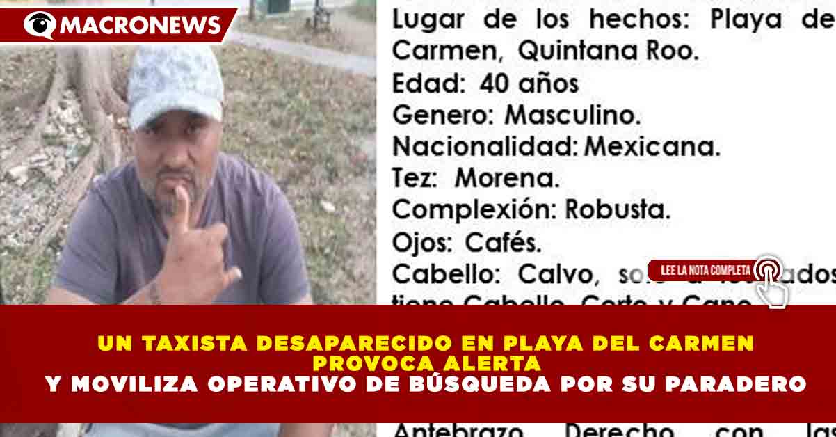 Redacción Macronews.- La desaparición de un taxista en Playa del Carmen encendió las alertas entre el gremio transportista, que ha solicitado la intervención de autoridades para dar con su paradero y esclarecer los hechos.