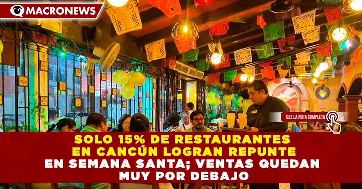 Redacción Macronews.- El sector restaurantero de Cancún reportó resultados por debajo de las expectativas durante el periodo vacacional de Semana Santa, ya que únicamente el 15% de los establecimientos logró un repunte en sus ventas durante la primera semana, mientras que en la segunda el beneficio fue aún menor, informó Perla Flores Navarro, presidenta de la Cámara Nacional de la Industria de Restaurantes y Alimentos Condimentados (Canirac) en Cancún.