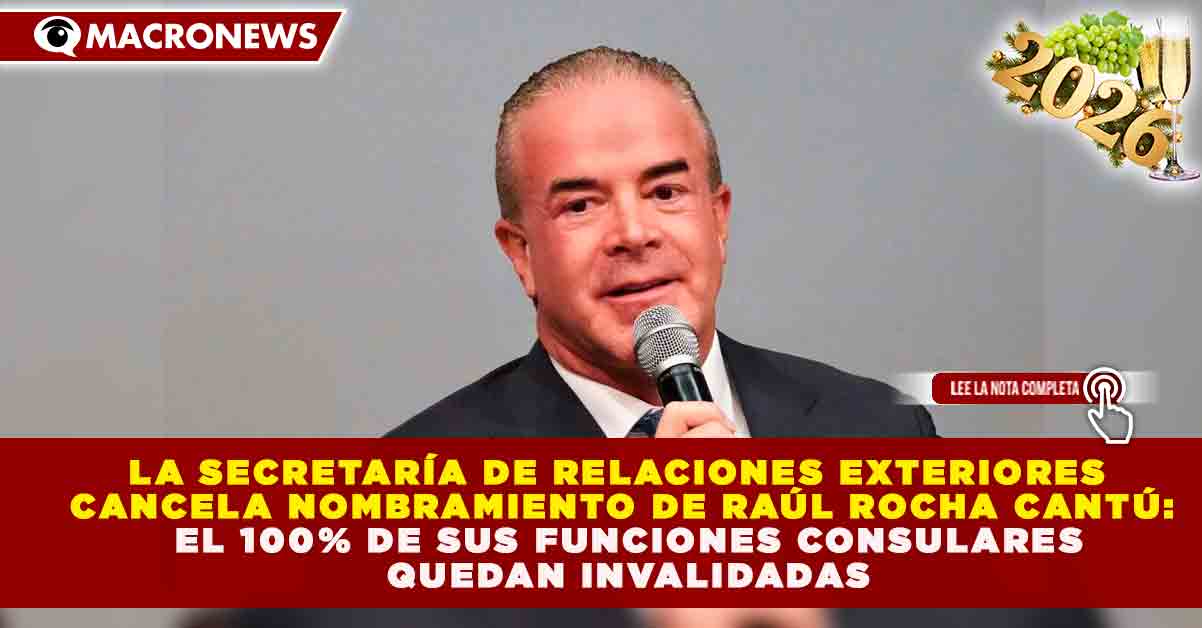SRE CANCELA NOMBRAMIENTO DE RAÚL ROCHA CANTÚ: EL 100% DE SUS FUNCIONES CONSULARES QUEDAN INVALIDADAS