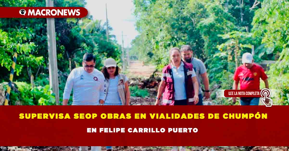 Chumpón.- Para constatar la calidad y el avance conforme a lo programado de la obra de construcción de calles en la localidad de Chumpón en el municipio de Felipe Carrillo Puerto, donde se invierten más de 20 millones de pesos la Secretaria de Obras Públicas, Irazú Sarabia May, acompañada de su equipo de trabajo realizó actividades de supervisión.