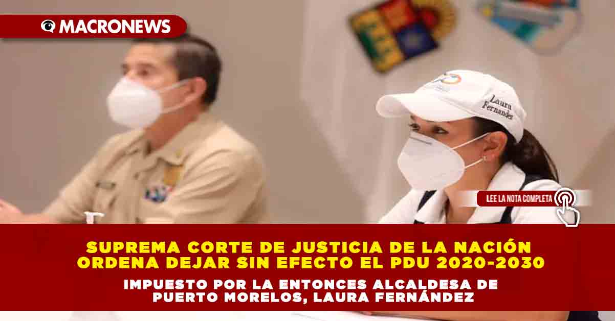 La Primera Sala de la Suprema Corte de Justicia de la Nación (SCJN) resolvió que el ayuntamiento de Puerto Morelos debe dejar sin efectos el Programa de Desarrollo Urbano (PDU 2020-2023) impuesto por la administración de la entonces alcaldesa, Laura Fernández Piña.