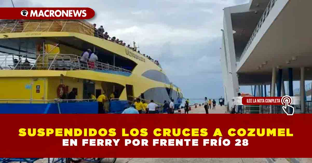 Debido a los efectos del Frente Frío 28 que actualmente se encuentra sobre la península de Yucatán, se han cancelado los cruces en embarcaciones de Playa del Carmen a Cozumel, hasta nuevo aviso, esto por órdenes de Capitanía de Puerto.
