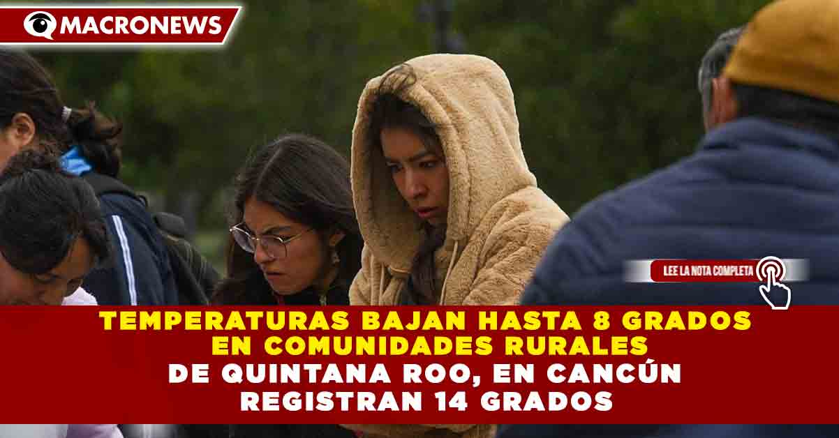 Redacción Macronews.- La Dirección de Protección Civil de Benito Juárez informó que la masa de aire polar provocó un descenso de las temperaturas, alcanzando 14 grados en Cancún y hasta 8 grados en comunidades rurales, con sensaciones térmicas aún más bajas.