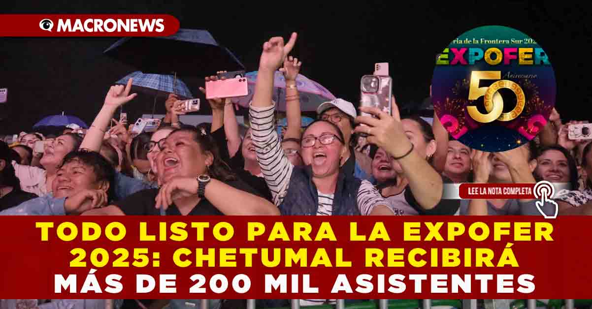 Redacción Macronews.- La capital de Quintana Roo se declara lista para recibir a miles de visitantes con el arranque de la Expofer Frontera Sur 2025, que dará inicio este 17 de octubre en el Parque Quintana Roo, recinto ferial oficial del evento. Autoridades estatales estiman una afluencia de más de 200 mil asistentes y una derrama económica superior a los 80 millones de pesos, consolidando a esta feria como una de las más importantes de la frontera sur de México.